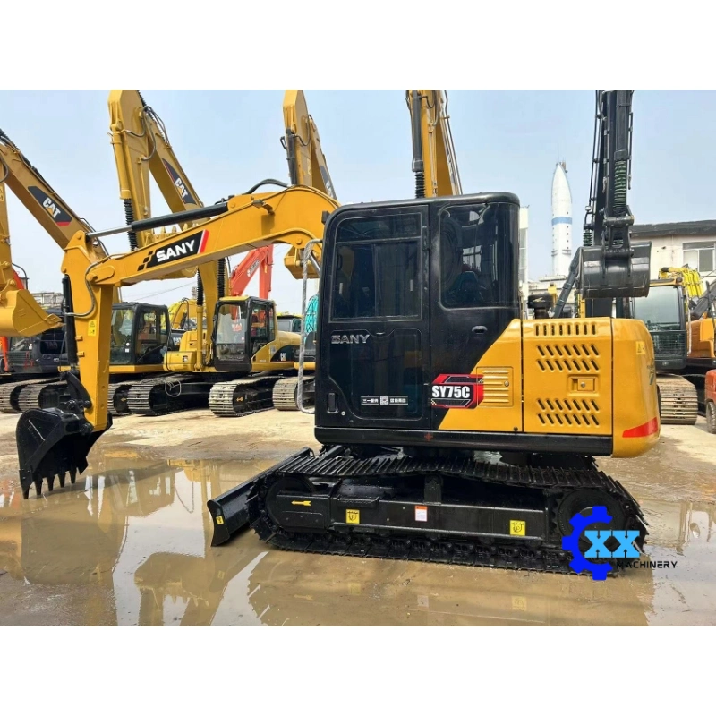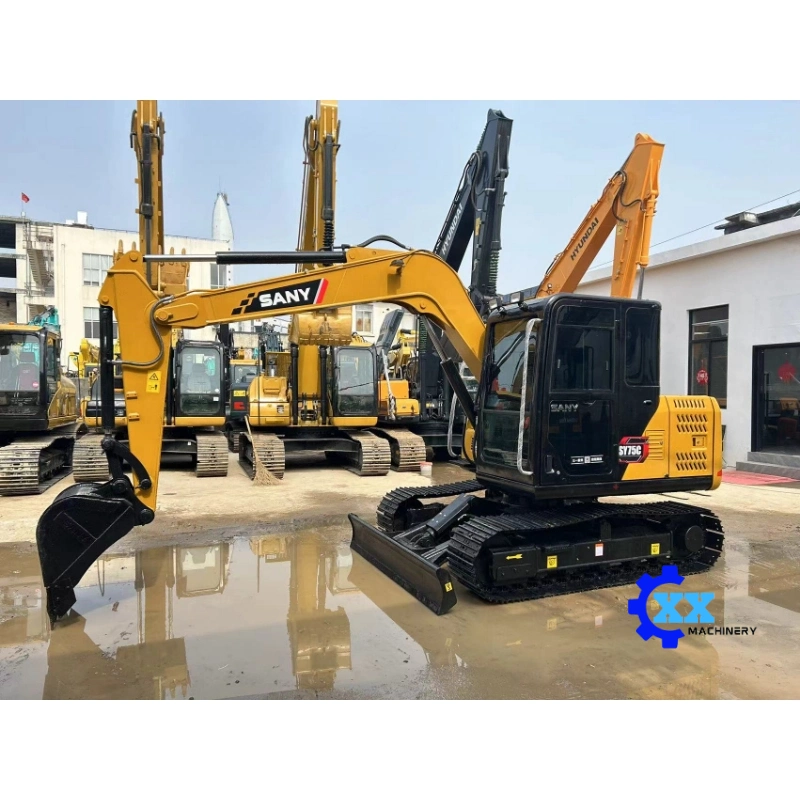 SANY SY75C is a 7.5-ton small hydraulic excavator with strong power, smooth hydraulic response and reinforced undercarriage. It has low fuel consumption, easy maintenance and good adaptability, widely used in urban construction, road repair, farm work, landscaping and small earthmoving projects.